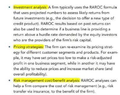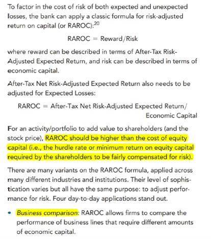 D选项正确,D选项说的就是RAROC的公式,RAROC的分母是economic capital分子是After-Tax Net Risk-Adjusted Expected Return。