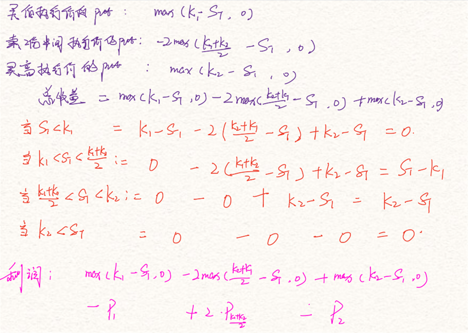 在老师的课程中,低执行价格为K1,高执行价格为K2,中间执行价格为(k1+k2)/2