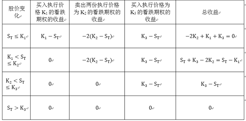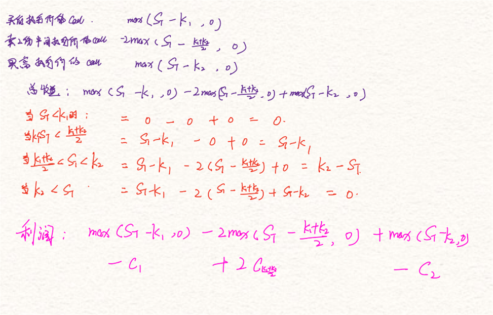 在这幅图中:低执行价格为K1,高执行价格为K3,中间执行价格为K2,其中K2=(k1+k3)/2