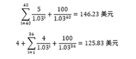 另外:假定某债券的息票率为8%,债券期限为18年零4个月。为了计算转换因子,假定债券的期限为18年零3个月。将所有息票支付的现金流以年率(半年复利一次)贴现到3个月后的时间上,债券价格为
