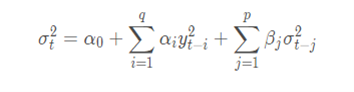是说某天的波动率,可以由过去p天的波动率(p个)和过去q天的收益率(q个)来进行解释。这里的(p,q),也是阶数。如图