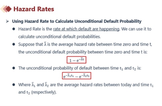 题目中给出的是default intensity(违约强度),而不是default probability(违约概率)。这两个是不一样的,需要通过第一、二行的公式进行转换(这部分公式在第四门课估值会学到,具体见讲义截图2)。然后根据条件概率的思路进行3、4步的计算(截图1)。