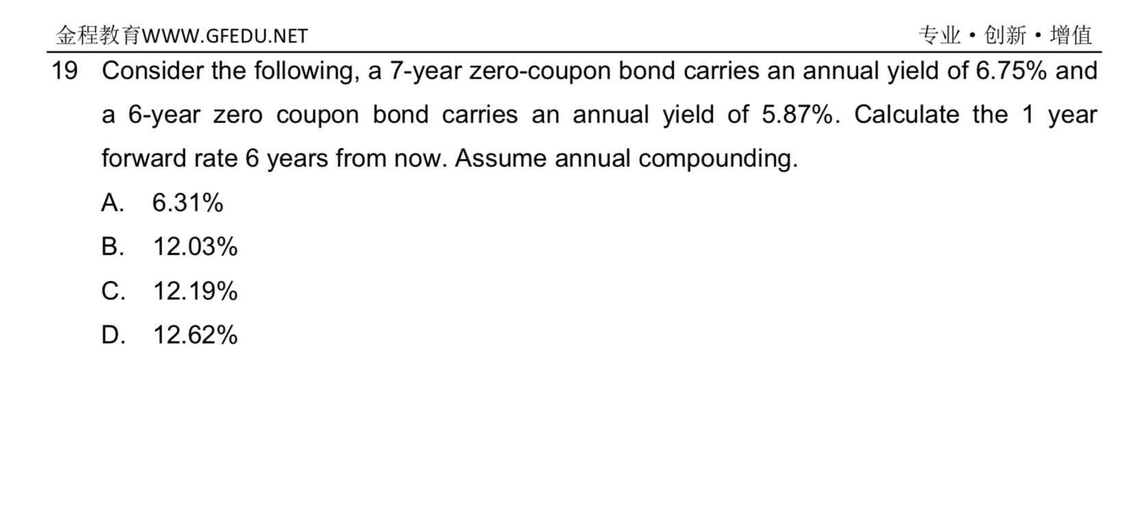 16题中为什么不是(1+ s1/2)^0.5 * (1+f/2)^0.5 = 1+s2? 而在19题中exponent中是6,1,7。什么时候forward rate和spot rate之间是不需要加上exponent的?