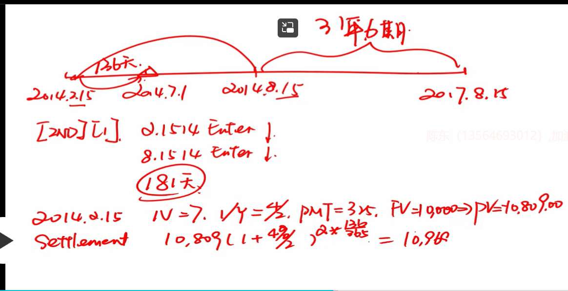 老师,按照您的说法,15题上一个付息日到到期日应该为11期,为什么是10呢?见老师讲课的截屏。