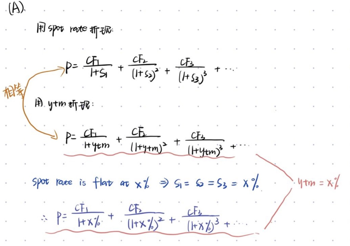 736题 a为什么正确? 即期利率是x,但是比如公司债也是有风险溢价的 那么它的收益率就应该大于x啊