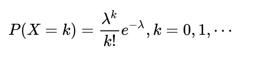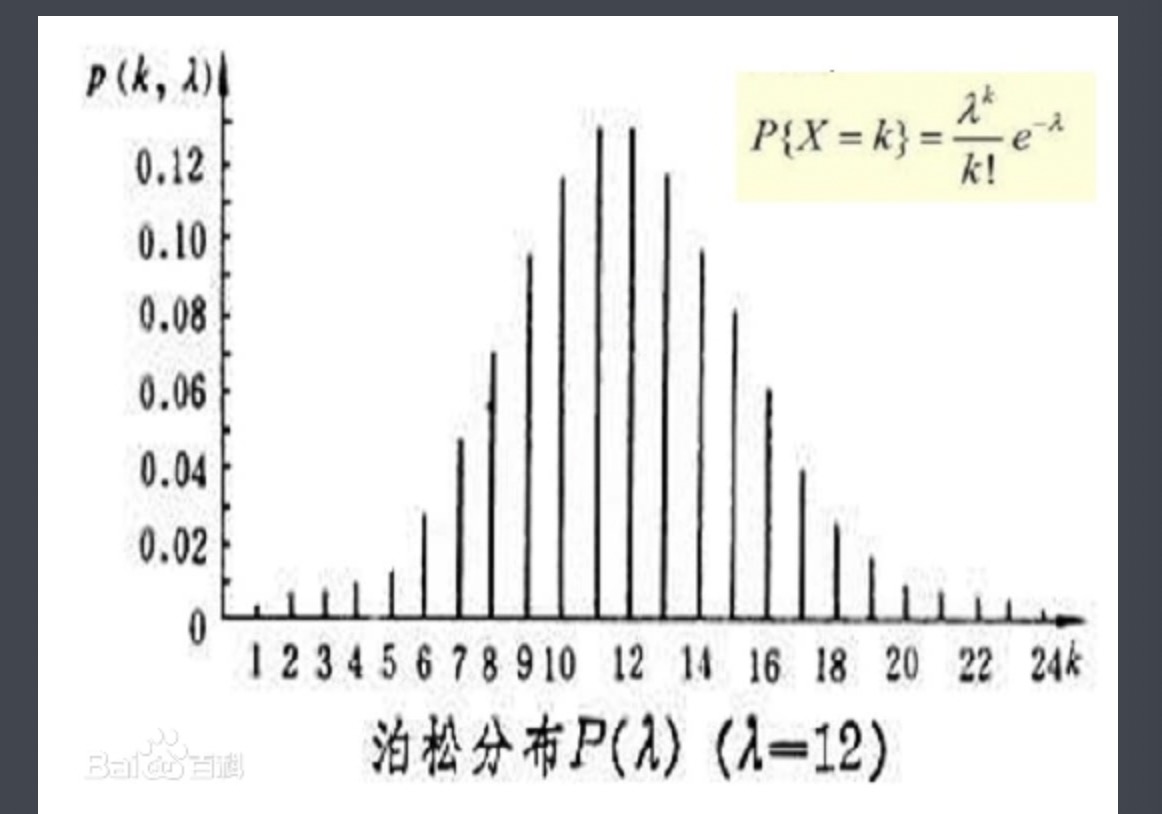 同学你好,附图是泊松分布的公式,k表示发生次数,随着k增大到一定数值时,通常分子的增幅小于分母的增幅。或者附图2、3是泊松分布的几个示图,横坐标是k,可以看到随着k增大到一定程度以后,纵坐标概率是降低的。