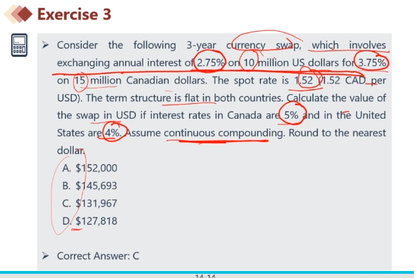 像最后一题的话,我们计算的是Currency Swap到期日前四年的value,并不是t=0时候的value,因为t=0的时候的value为0。这样理解对吗?