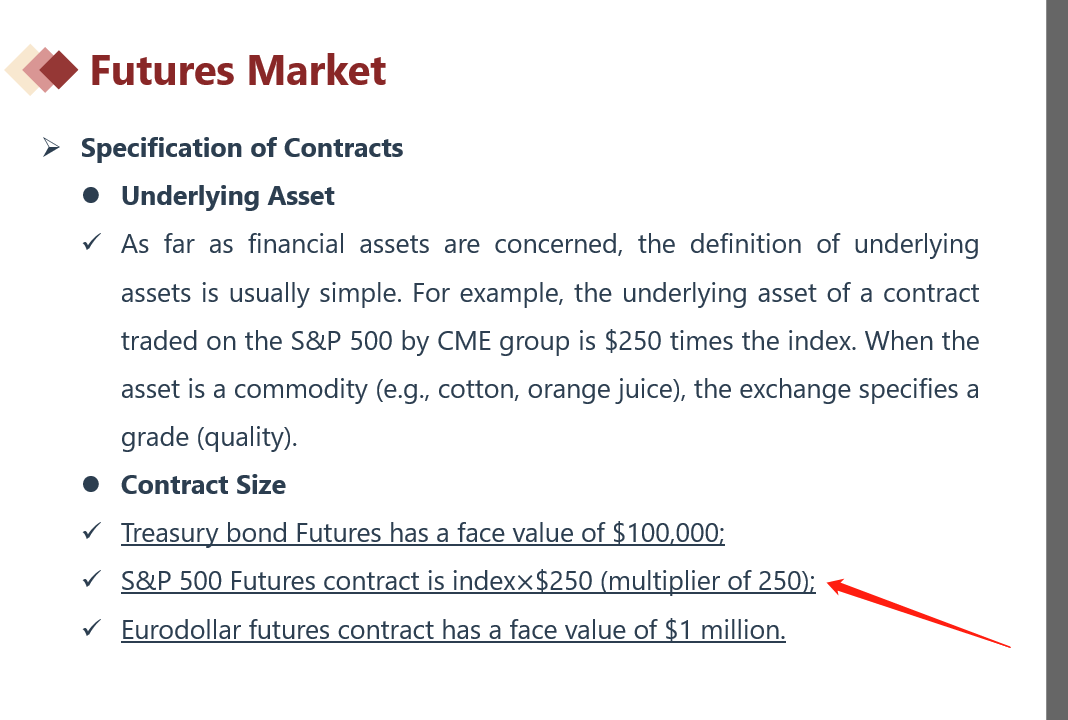 比如指数是1200,那么标普500指数期货合约价值就是1200*250。