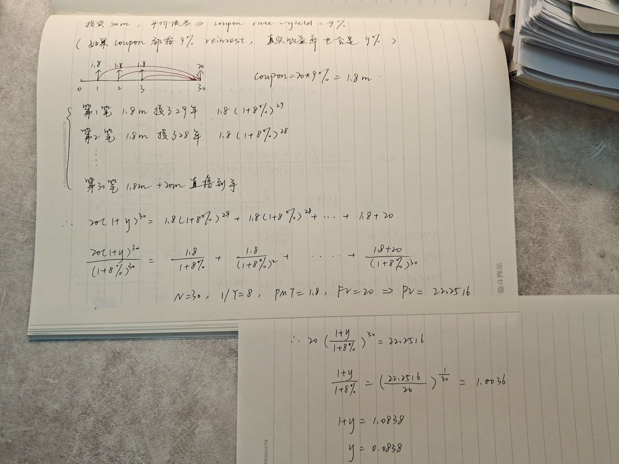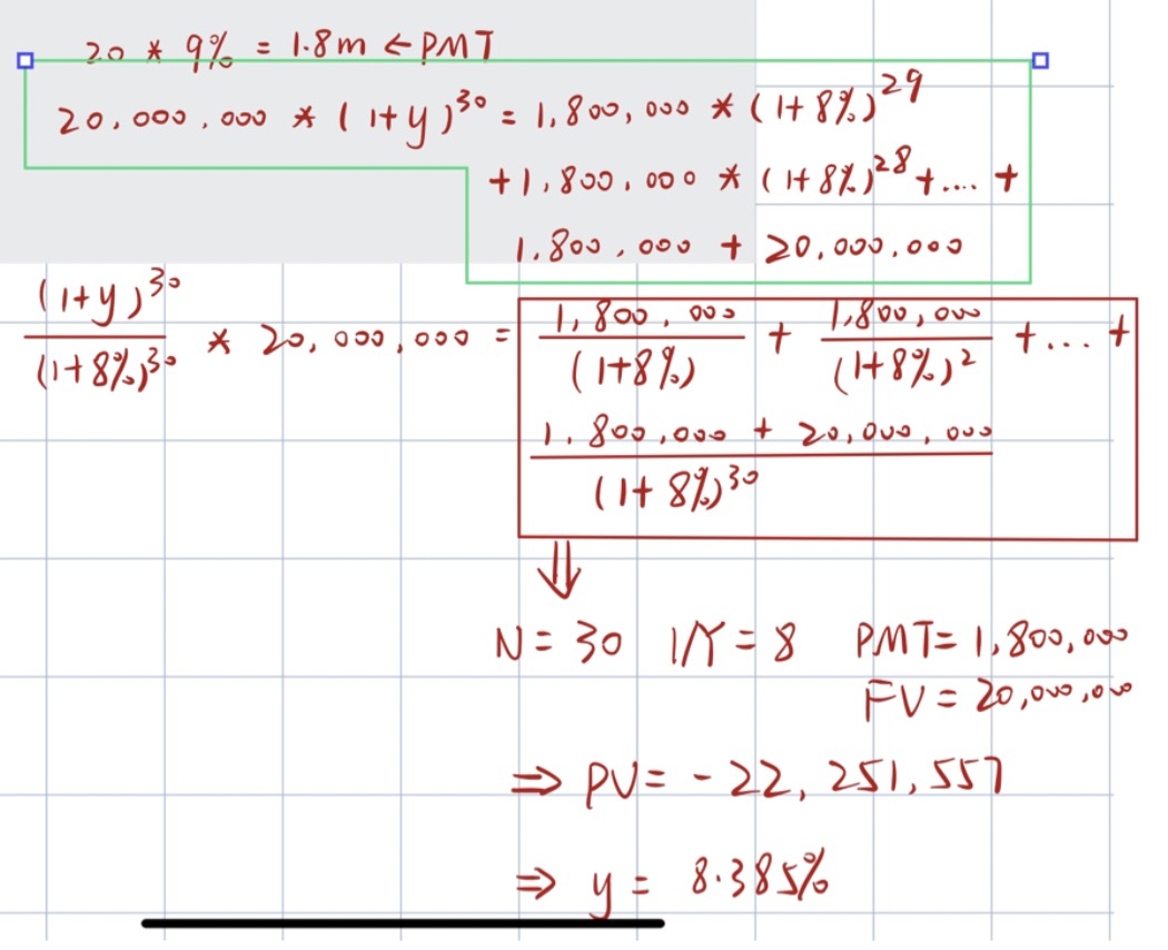 你好同学,左边是如果不进行再投资,利率是多少可以等于右边再投资的收益
