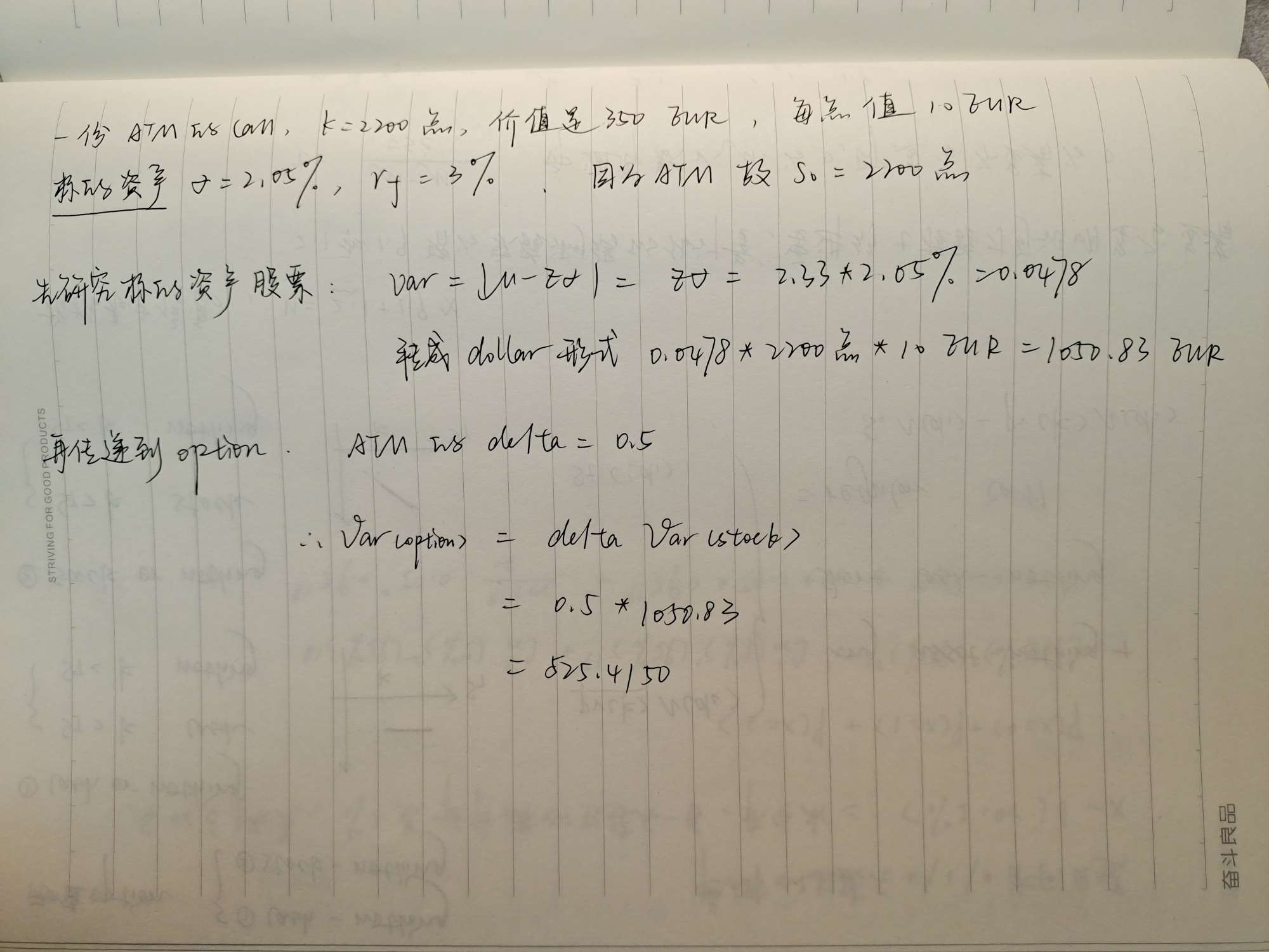 815 这种题到底根据那个金额算var呢?为什么不是350?2200不是执行价格么……那就不一定能达到啊