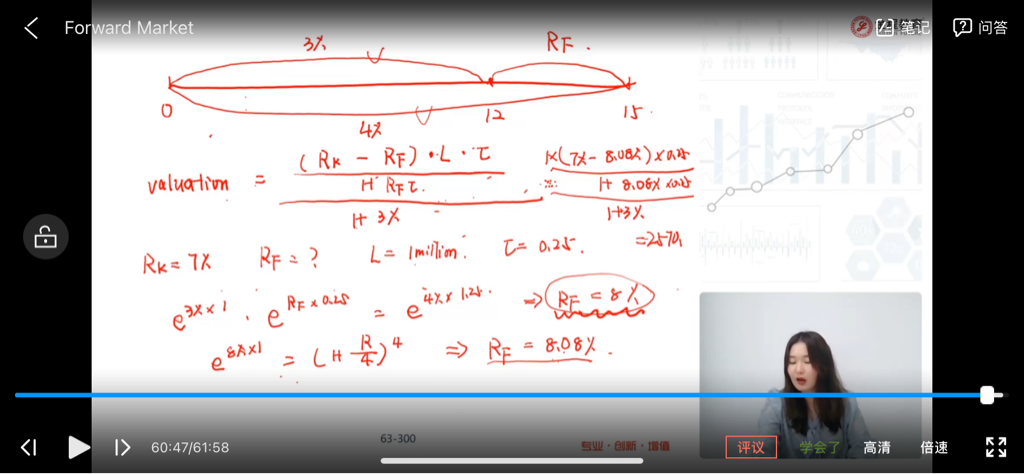 这道题他问的value所以即使我们在算settlement的时候 我们要对利率进行调整。但是如果题目仅仅只是问settlement 或者是他的payoff时我们就只是单利计算 不考虑对利率进行调整是嘛