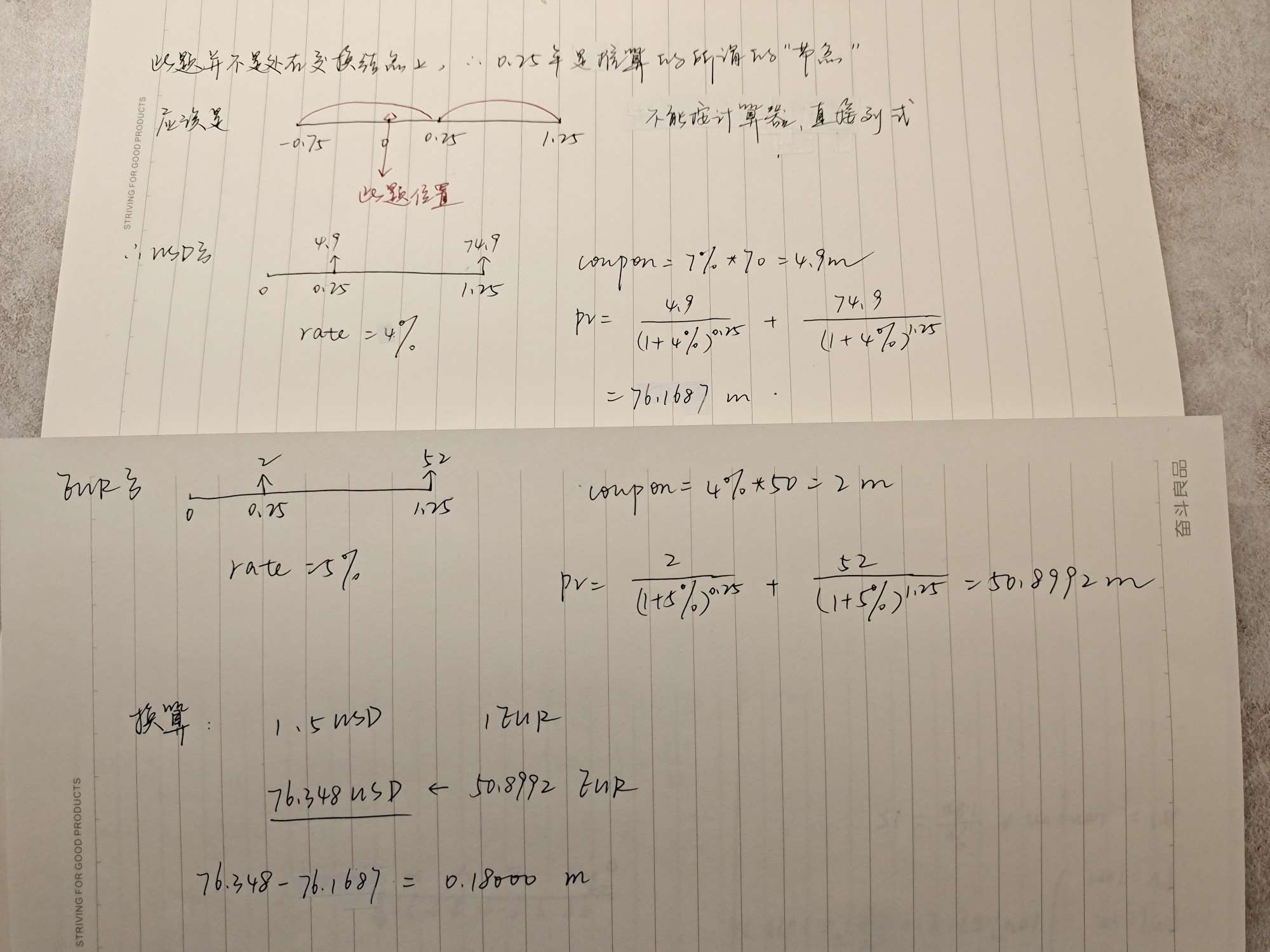 至于这道题,是从“到期日”往前推,这也就能说我,我们目前所处的0时刻,并不是“现金流发生的时刻”,是在两个付息日之间。具体做法参照孙同学的图片。