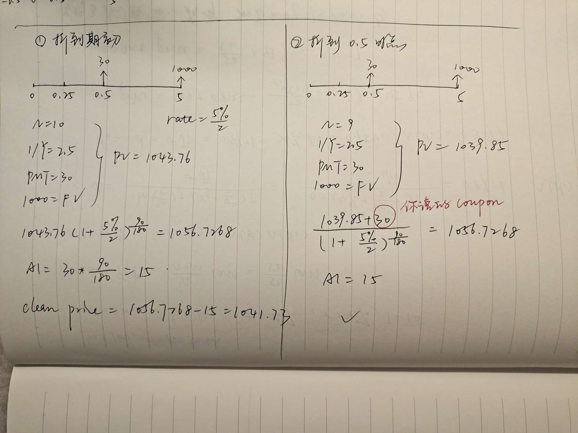 这个不是这算到settlement下一期不是要加上coupon折现么