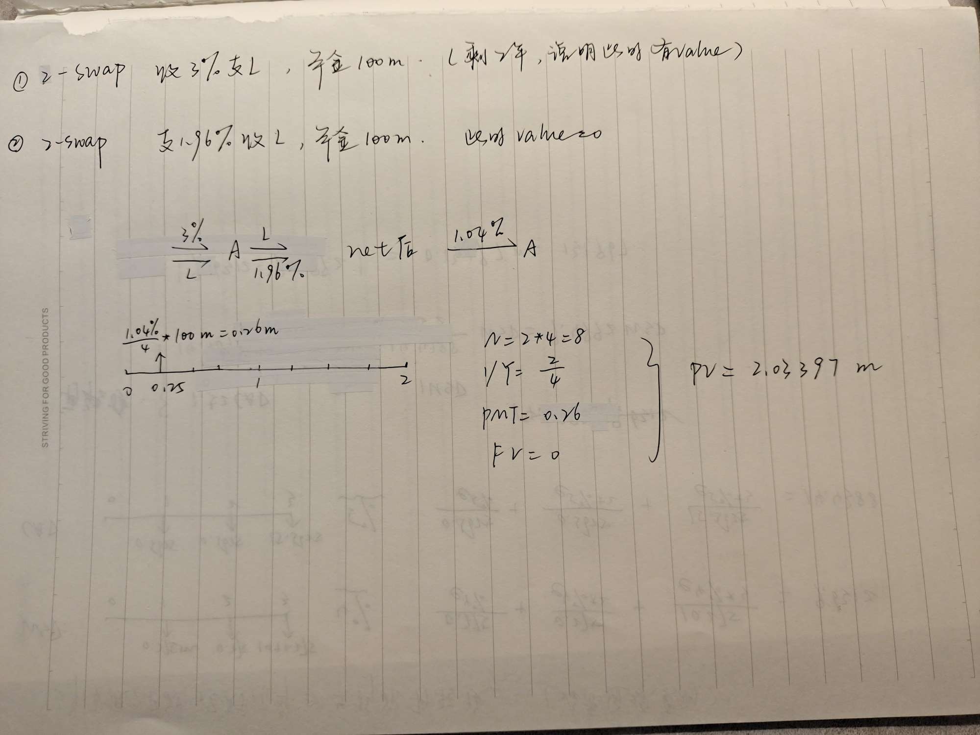 这个组合没有浮动端的利息,只会每期产生本金*1.04%/4=260000的现金,一共会产生8期。
