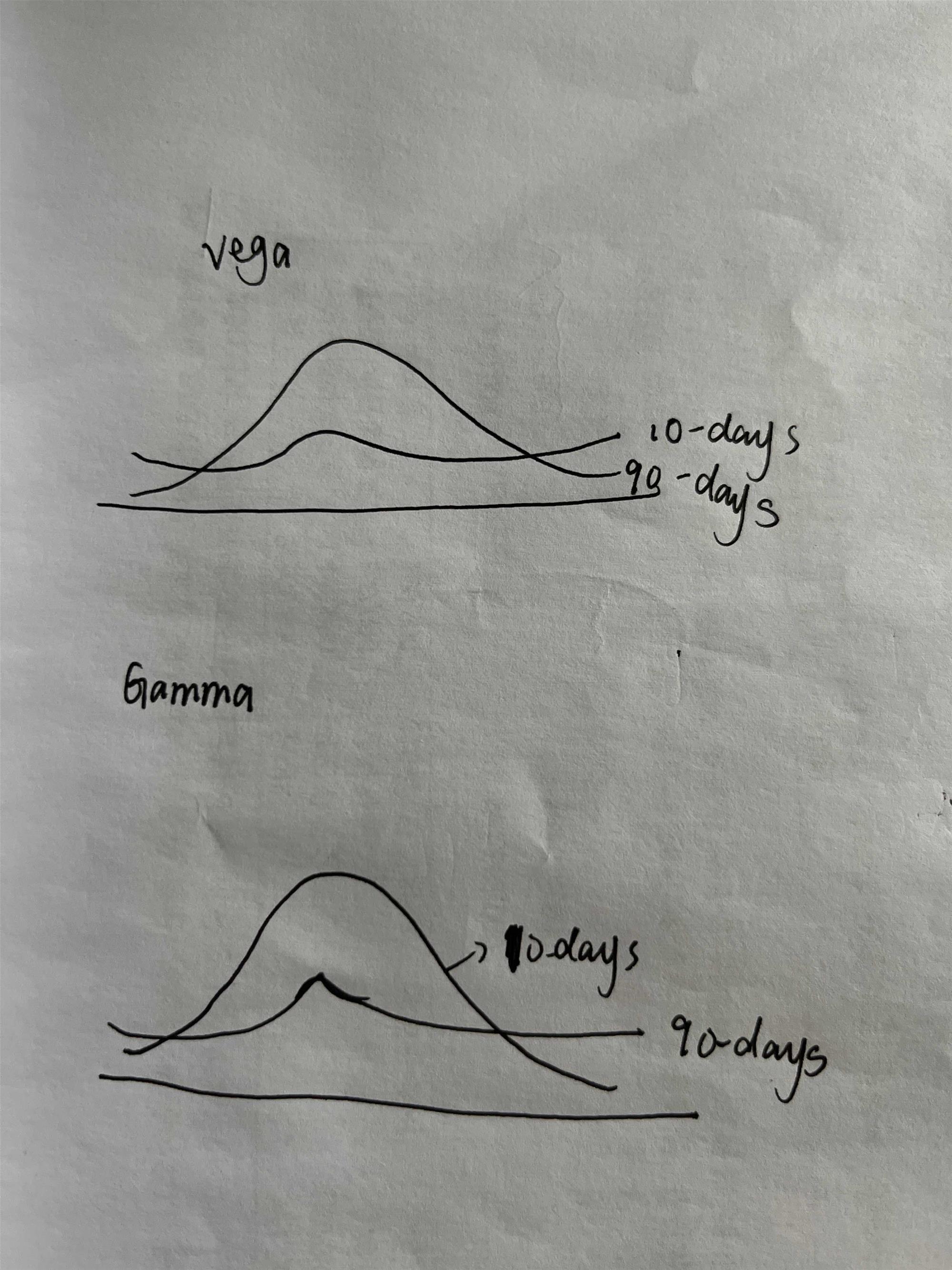 对于(A),卖出短期期权+卖出长期期权→正的theta,负的vega和γ。