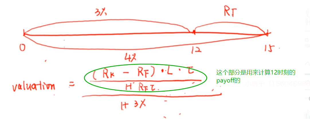 将12时刻的payoff,折现到0时刻。就是价值。也就是讲义上的:PV(公式)。