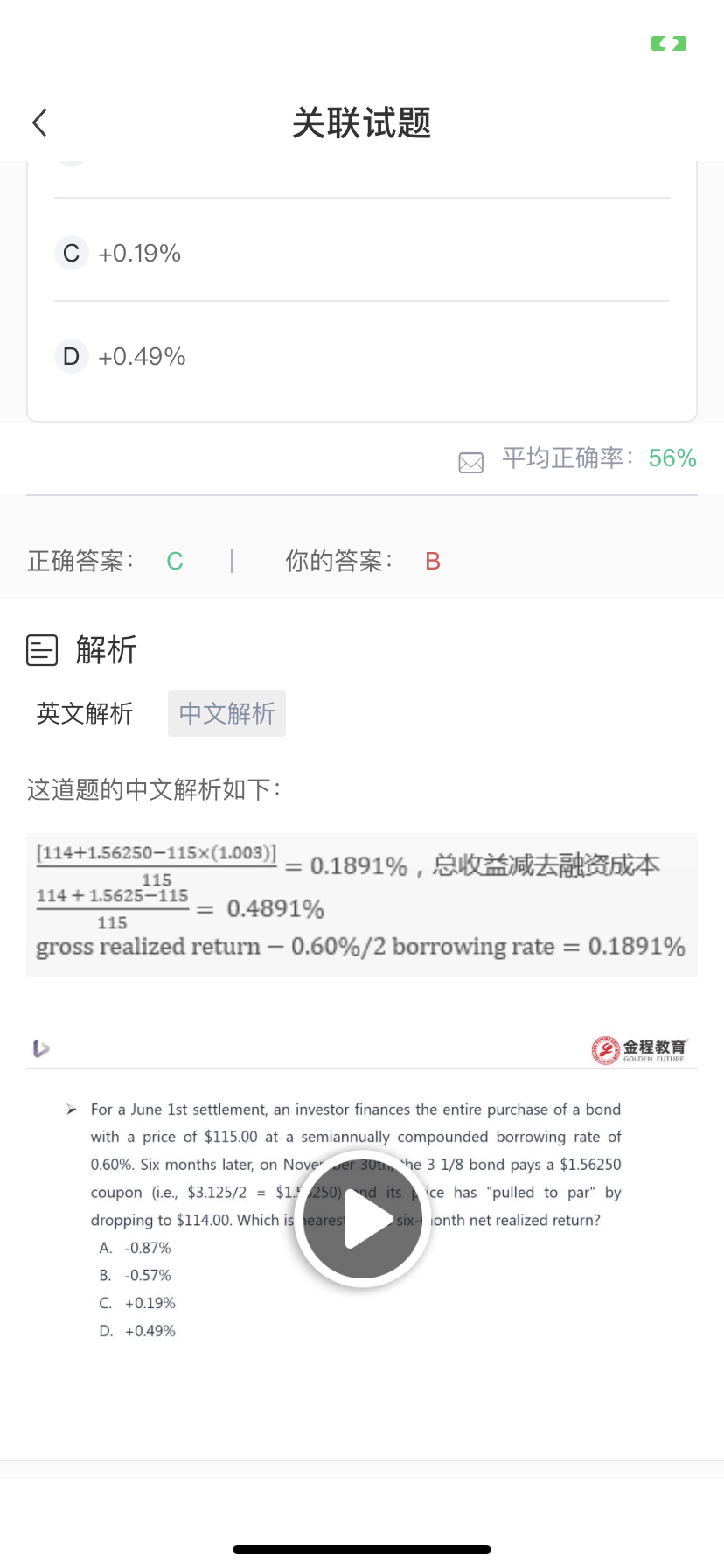 为什么视频里的题目 gross realized return 减去借款成本不等于net realized return呢 而课后题的gross realized return 减去借款成本等于net realized return 。所以 gross realized return减去借款成本等不等于net realized return?