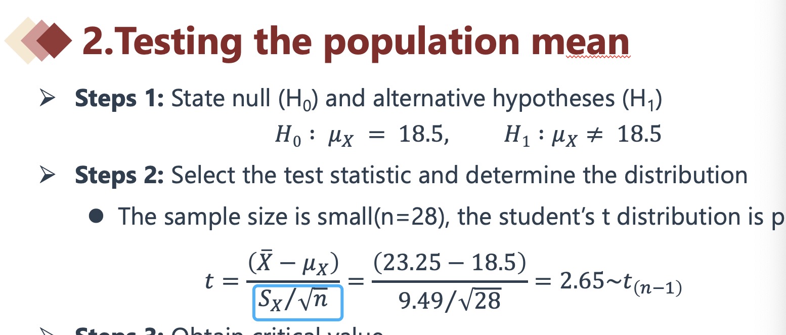 同学你好,可能没有说得那么明显,在均值或者系数有关的检验里面,t-stat的分母就是标准误,其等于标准差除以根号n。见附图。