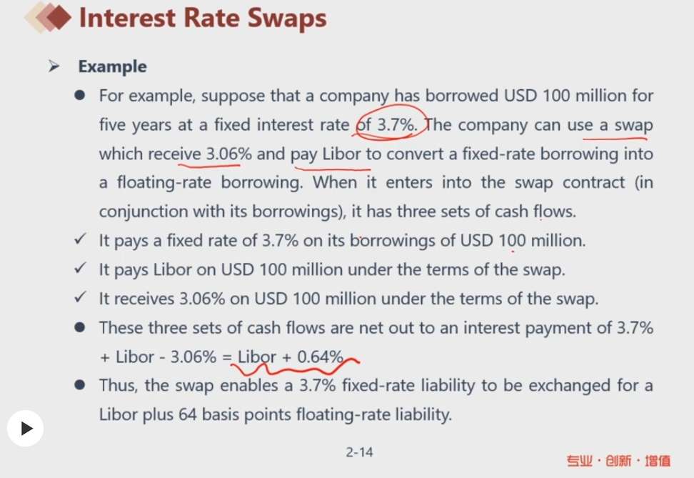 所以利率互换可以帮助我转换原有现金流的属性【支出固定。最后变成了支出浮动】