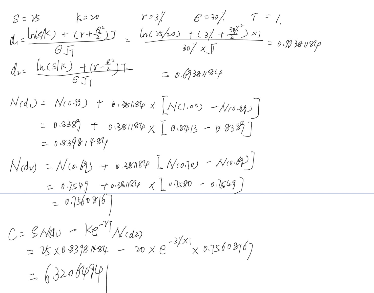 那么这道题题目给出的普通期权价格6.32是如何算出来的呢?请老师给出计算过程,谢谢!
