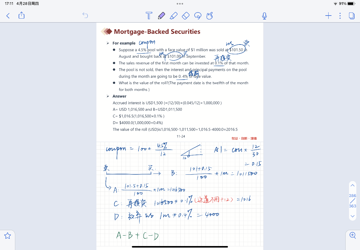 不可以的哦,因为你还需要算C:再投资所得利润,这个时候的本金必须要用到加上AI之后的脏价才行