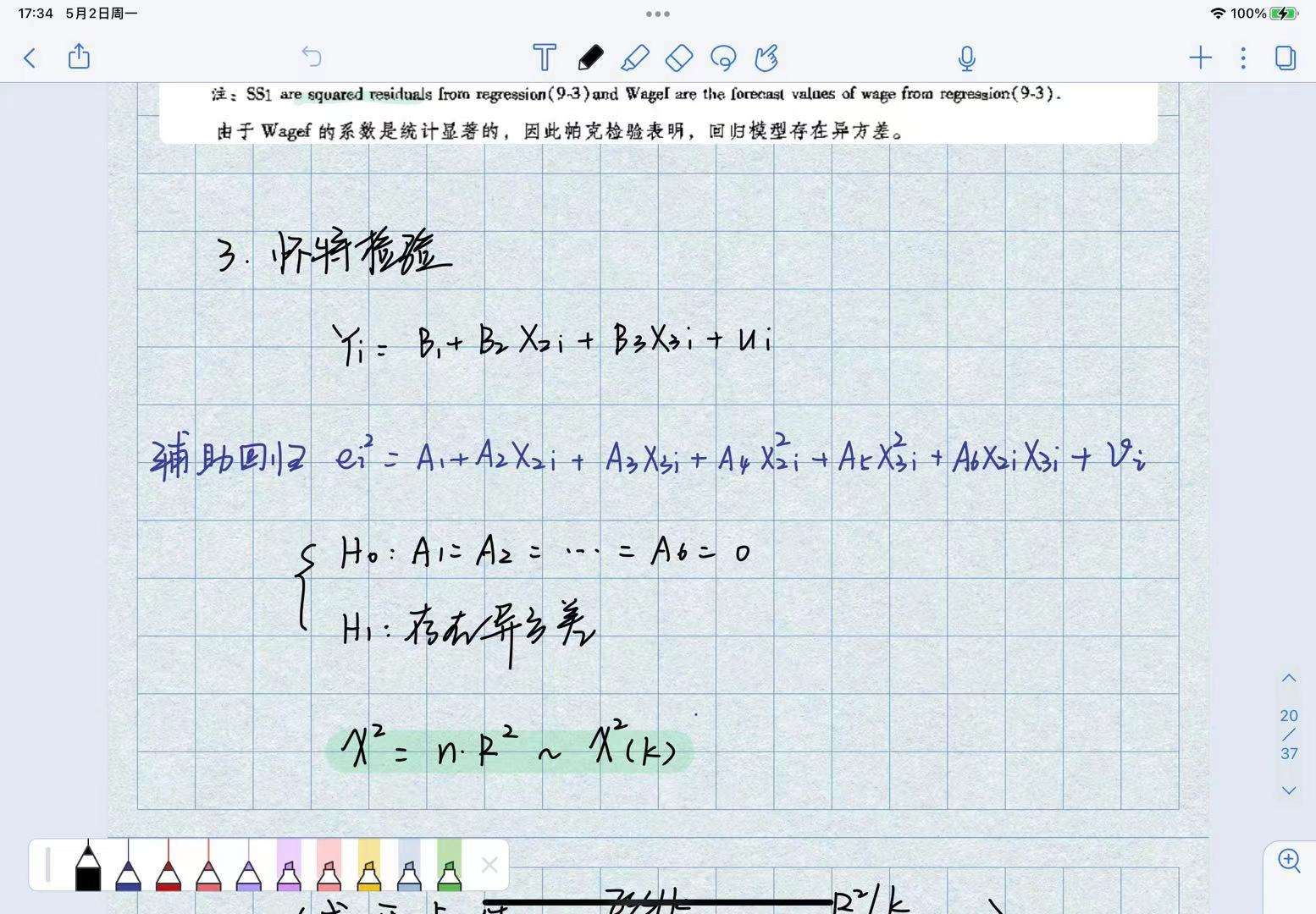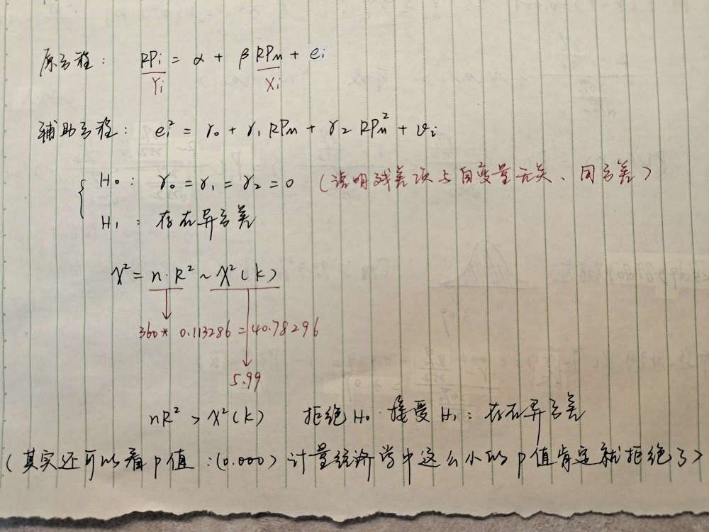 做怀特检验是需要构建辅助方程的,整理好就是这位同学图片中的表达。