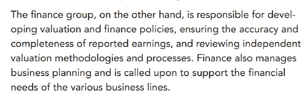 同学你好,D选项的内容并不是风险管理部门的职责,而是financial group部门的职责,