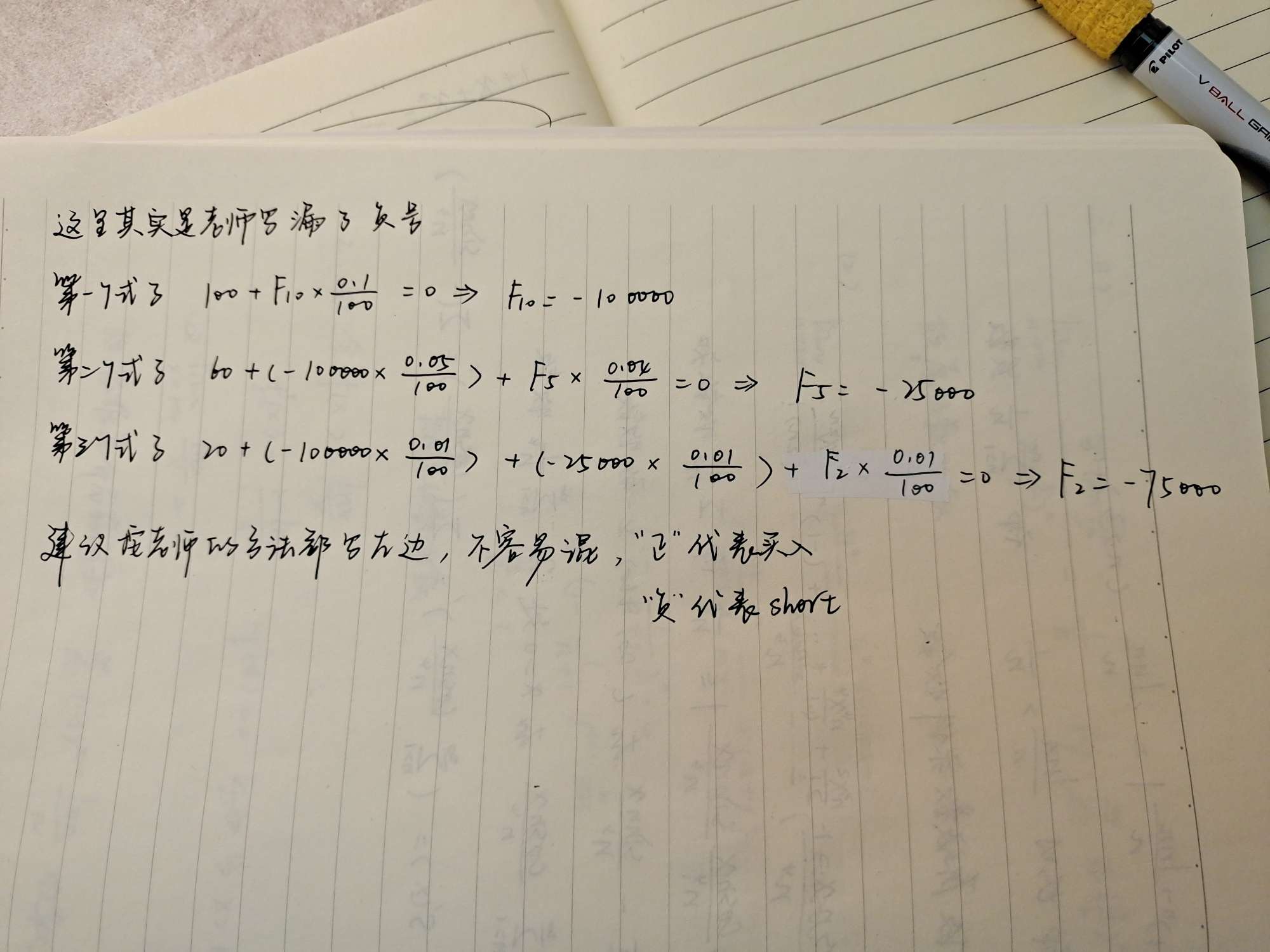 老师,第二个等式老师板书和答案是不一样的,按照老师板书60在等式左边,F5应该是27500.而按照答案里的公式60是在等式右边,算出的F5就是25000,那么究竟是加60=0还是等于60呢?请老师解答一下