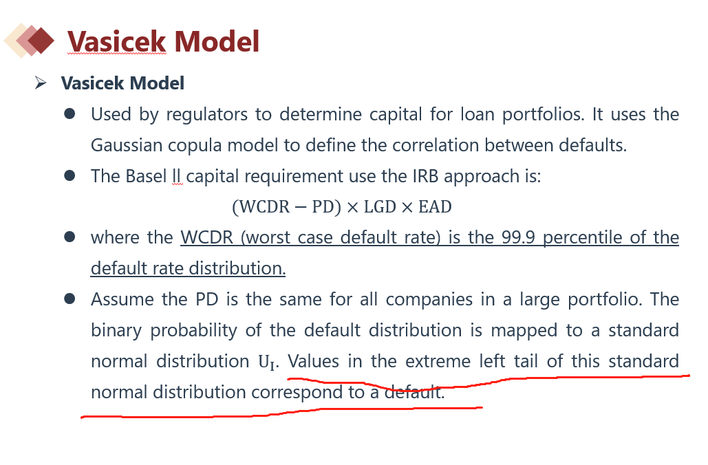 同学你好,这个题说的是vasicek模型的相关内容。这个模型的理论基础是高斯copula。