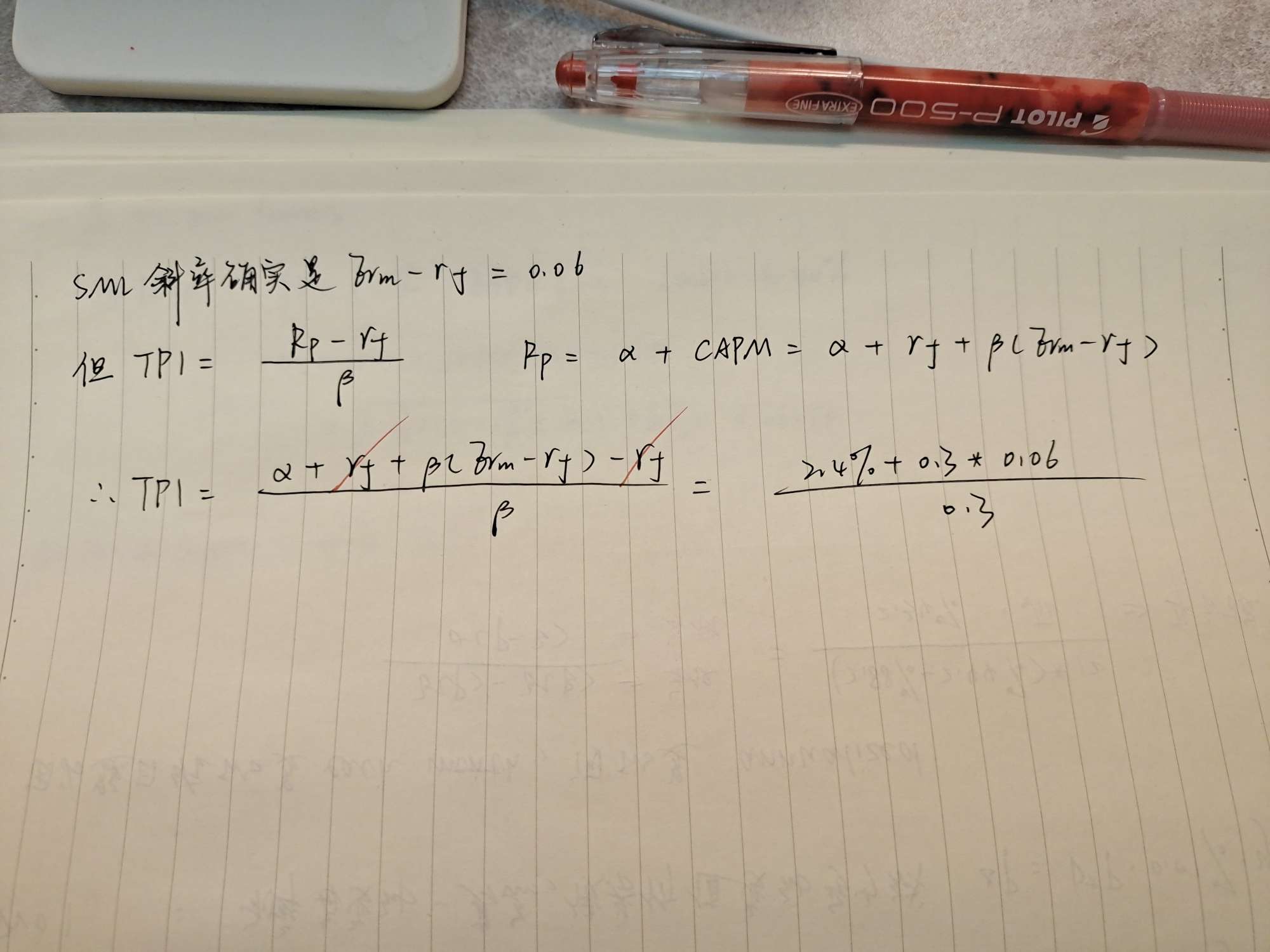 SML的斜率确实是rm-rf呀。直接给了:rm-rf=6%,为什么还要再减去2%呢?