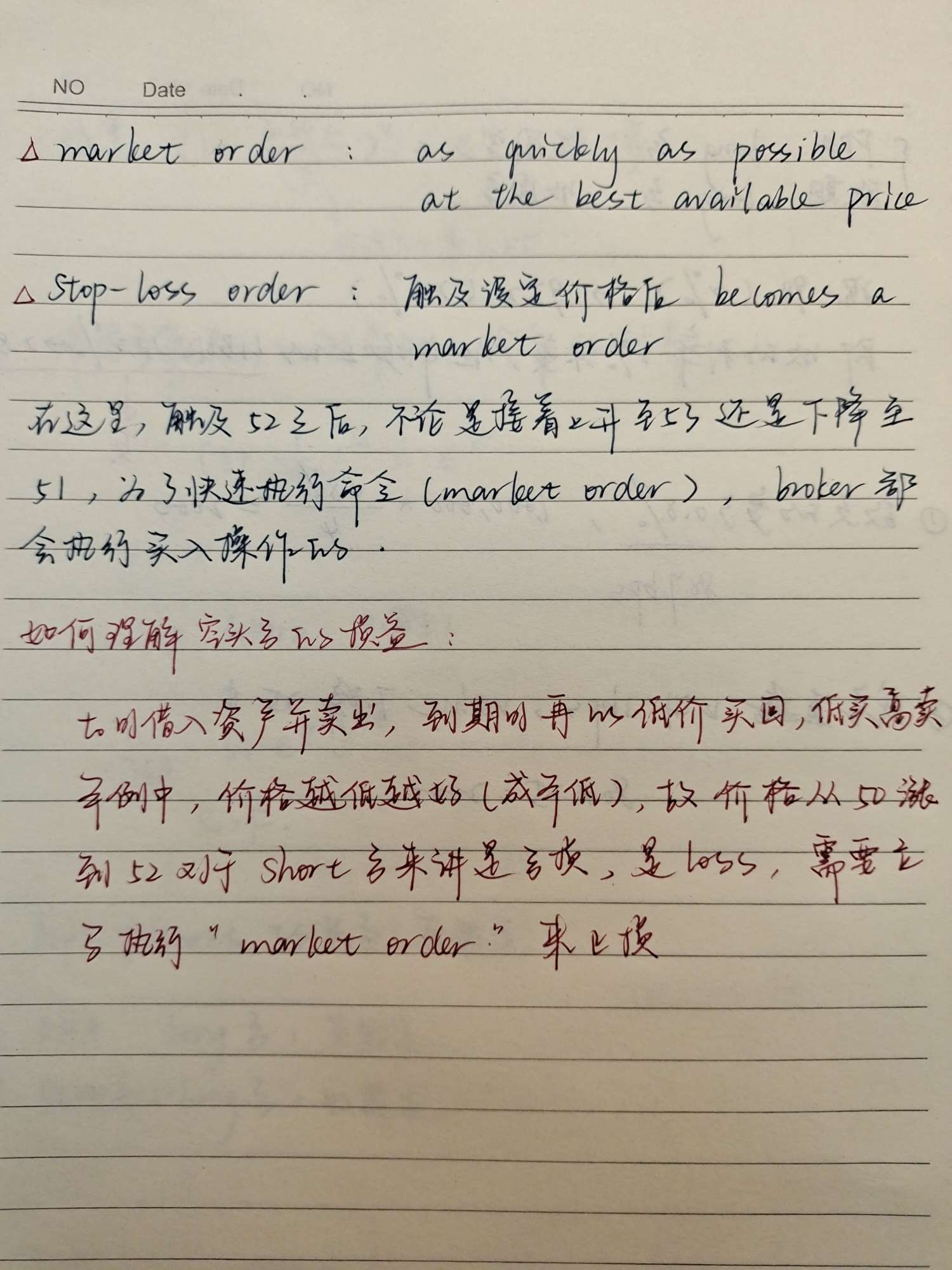问stop-loss order里的例子没看懂,如果价格升到53或者下降到51都可以被执行,那么怎么limit a trader’s loss?