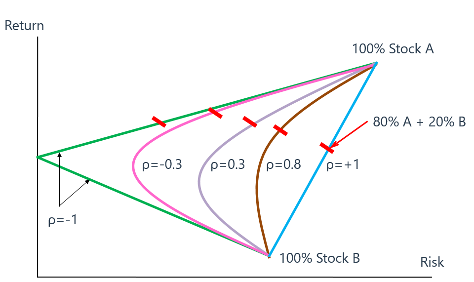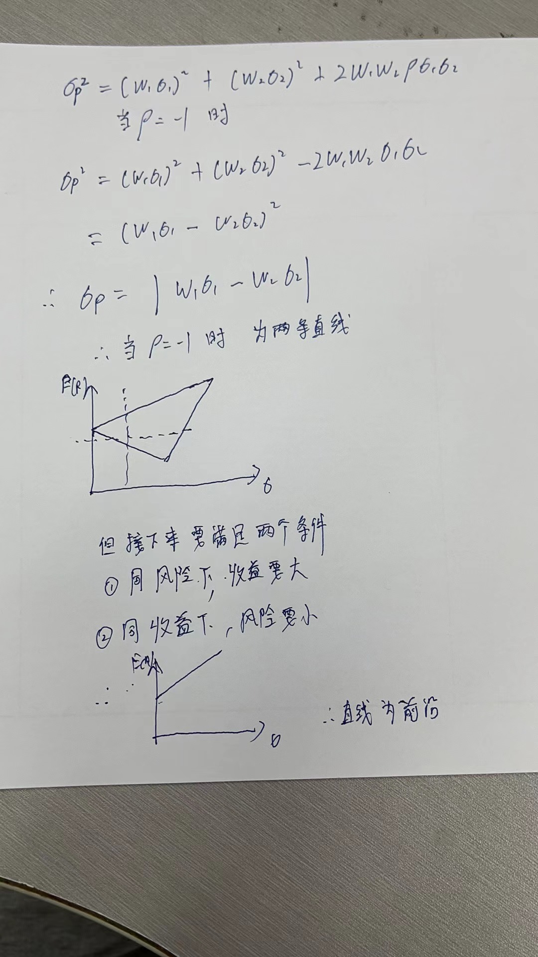 老师,当相关系数为-1时,可行集是两条直线吗?那上面那条直线是他的有效边界吗?