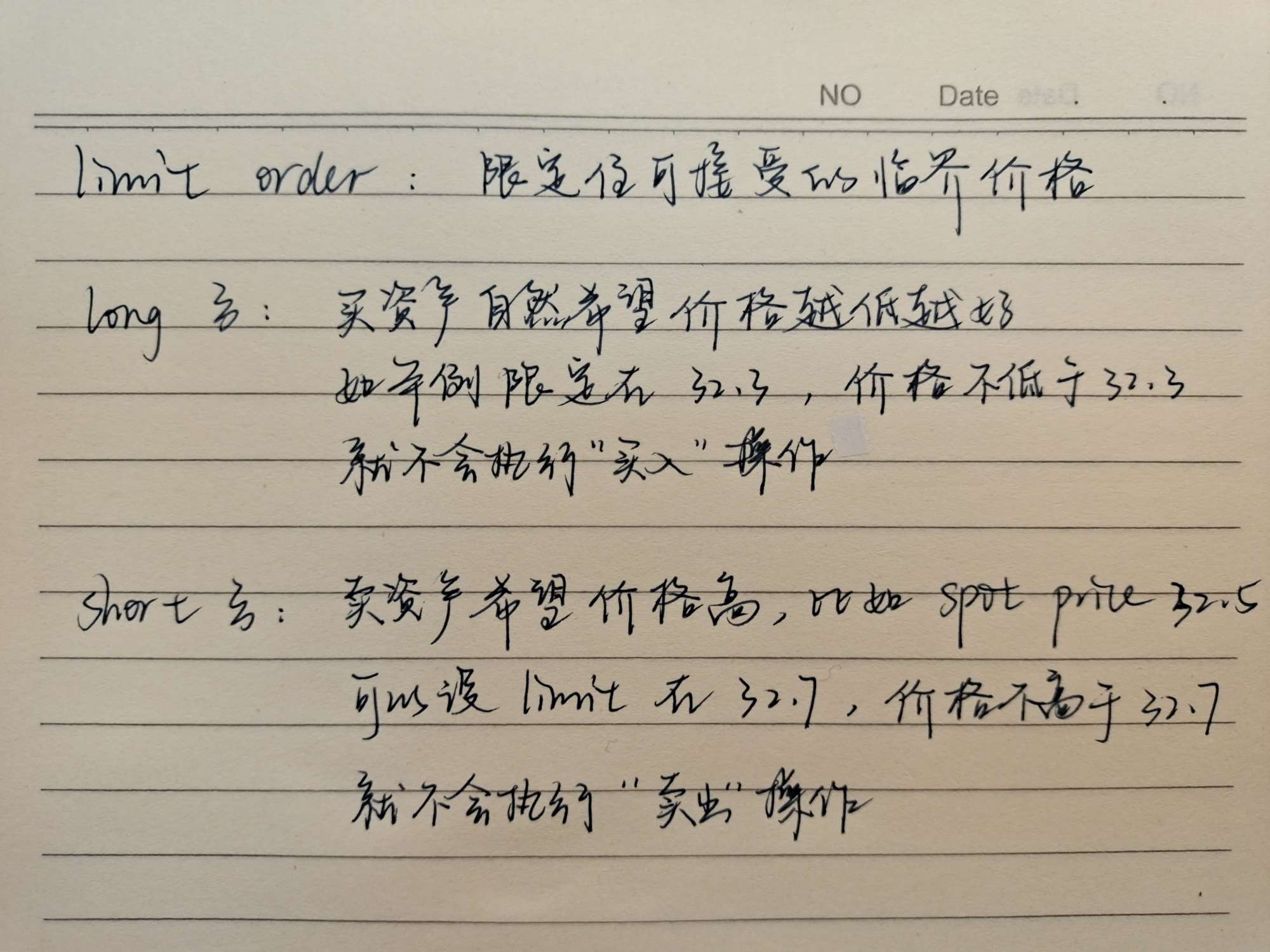如果投资者是多头方的话,假设投资者的限价设定在5元钱,此时投资者是以限价或者比它更优的一个价格达成交易的,因为投资者是多头,更优的话应该是更低的一个价格,所以是以小于等于5元达成交易,如果是空头,限价是8元,就会以大于等于8元达成交易。