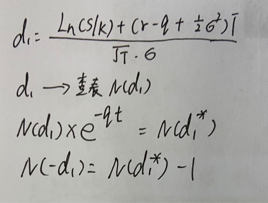 老师您看看我算有分红的put的delta过程对吗,为什么算d1的时候减去了分红q,在Nd1还要对分红进行调整呢