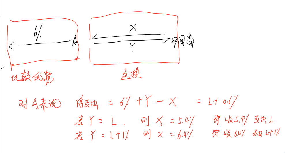 所以A实际的净支出是:意愿和节约:L+1%-0.4%=L+0.6%,这是他最后的现金流。