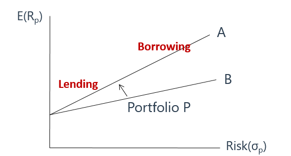 同学您好,是的,如果借的别的就不对了,借的无风险资产就相当于移动到了图上的borrowing点,但还是在一条线上,斜率没有变