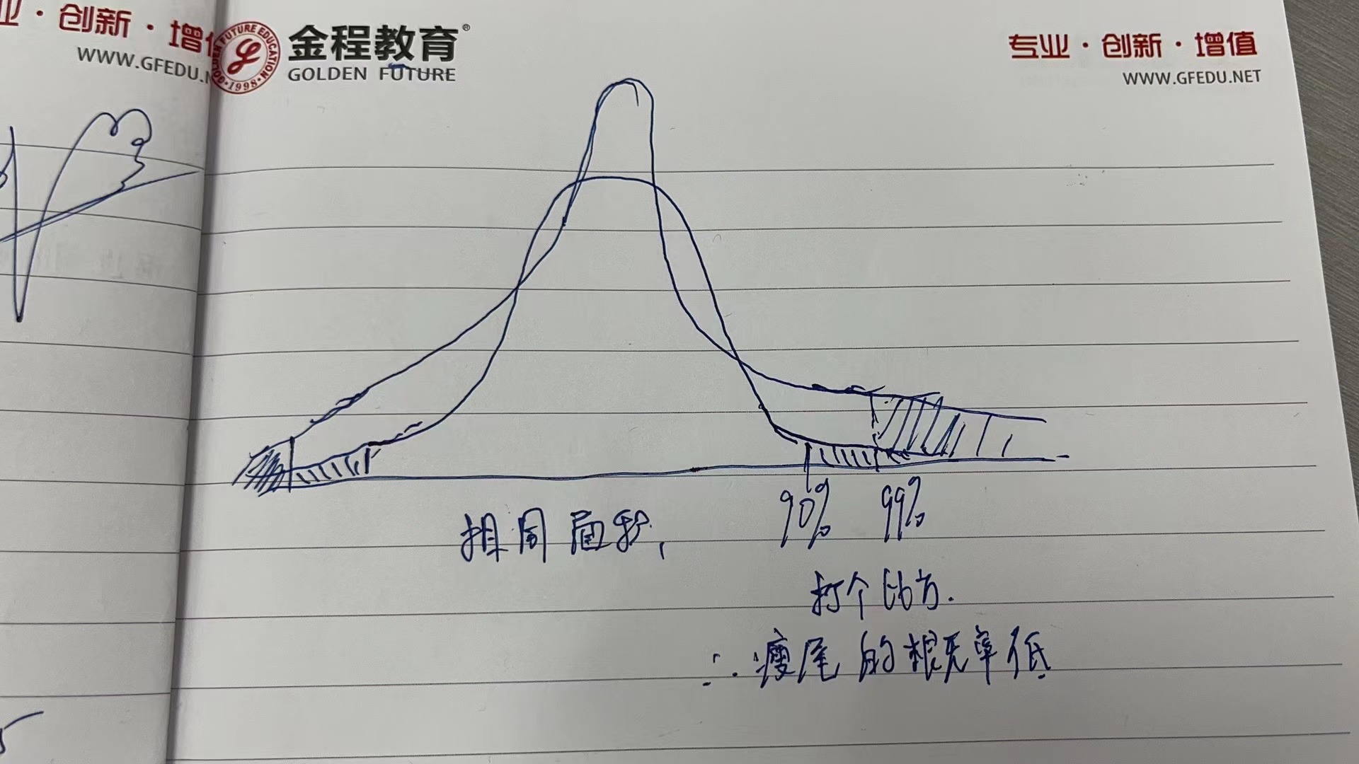 同学您好,题目问的是:假设分布具有相同的均值和方差,那么对于极端值,哪种类型的分布产生的概率最小?为什么选矮峰呢,因为矮峰瘦尾,相比于肥尾,在相同的面积下,瘦尾的产生的概率更低。如图