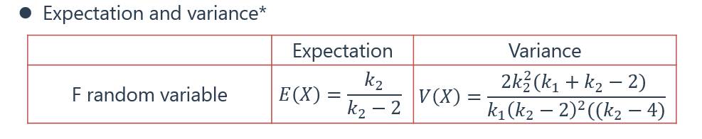 同学您好,您可以看一下这两张图,是卡方分布和F分布的均值方差,可以看到卡方可以说均值小于方差,但F分布无法比较的哦