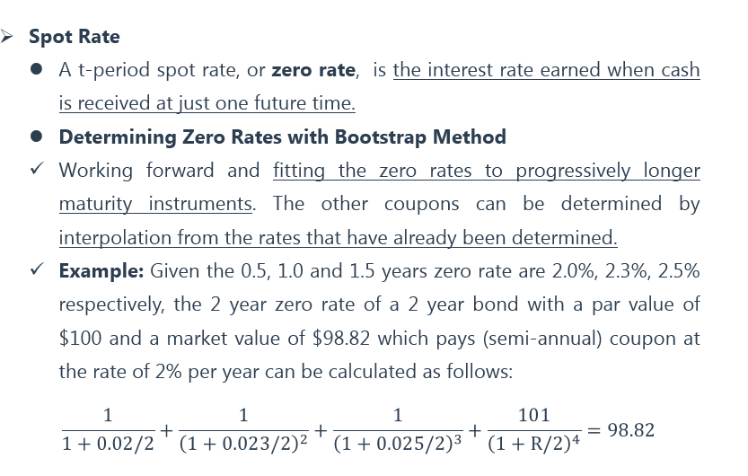 该题中一年期即期利率为什么是这么算的,有点不大理解,这里所用的公式是什么,题干中的98、99、101是期初投资还是期末收到的钱?书上的公式如第二张图所示,我没有想到该用什么公式去解释下面的解析中的方法