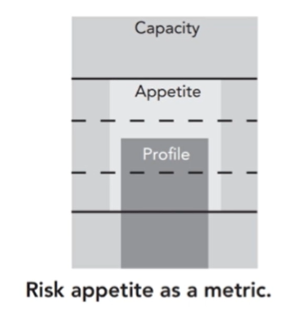 同学您好,risk capacity相当于一家公司风险承受能力,是客观的,打个比方,公司全部资产加起来10万,那么它的capacity就是10w,大不了破产嘛;risk appetite相当于一家公司风险承受的意愿,是主观的。这是公司董事会设定的,比如我们公司不能亏10万,最多亏1万。risk profile相当于一家公司实际上承受了多少风险,比如现在已经亏损了5000。同学可以看下图哈