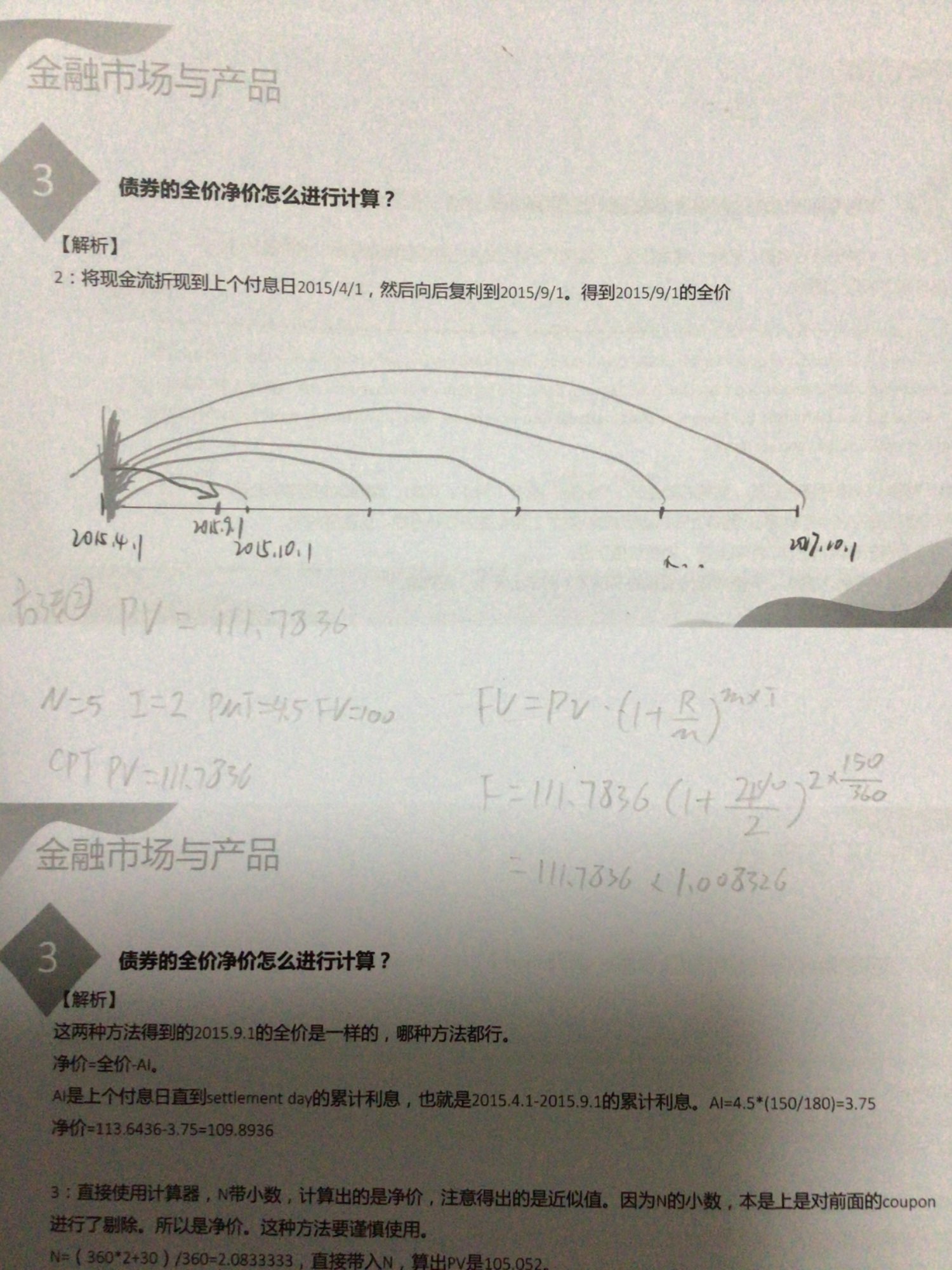 老師,想請教一下可否詳細講解一下2211frm金融市場與產品答疑直播,第三題債券的全價淨價的兩個計算方法嗎?計算是一部份用計算器?一部份不能?還是全部用算式計算?