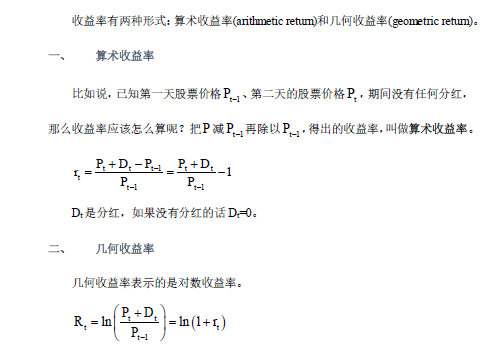 收益率有两种形式:算术收益率(arithmetic return)和几何收益率(geometric return)。