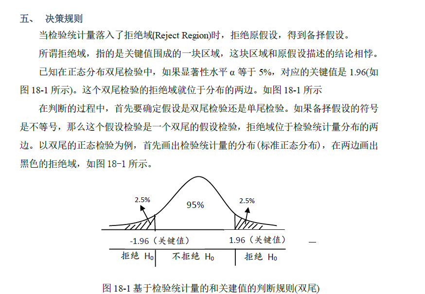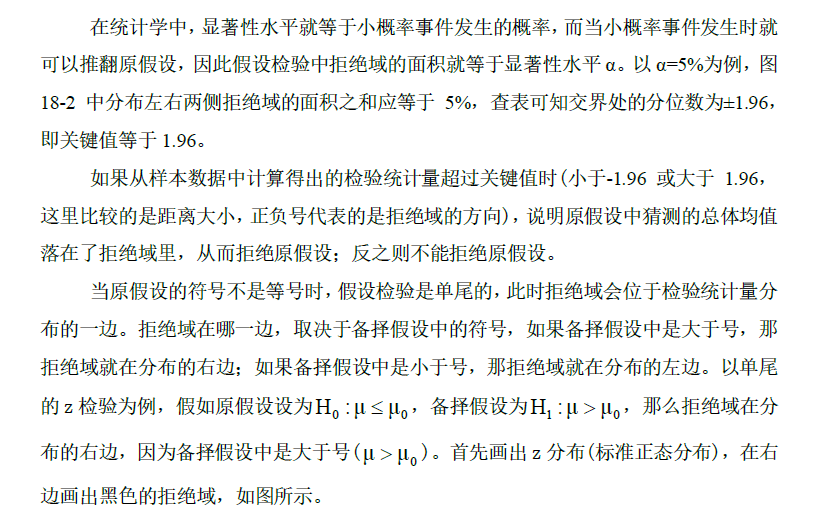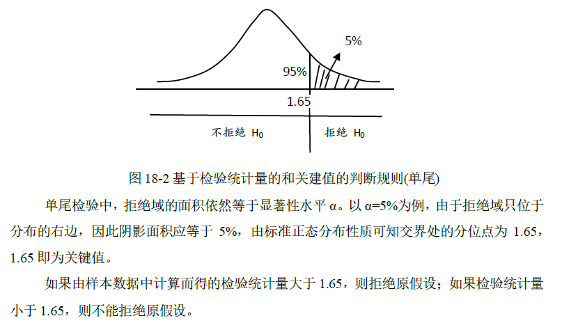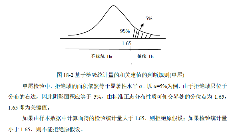 单尾假设检验原假设H0为a≤A 备择假设是a>A 95%的置信水平,那么拒绝域是否应该是>1.65?如果我算出检验值是-2,我是否应该拒绝呢?