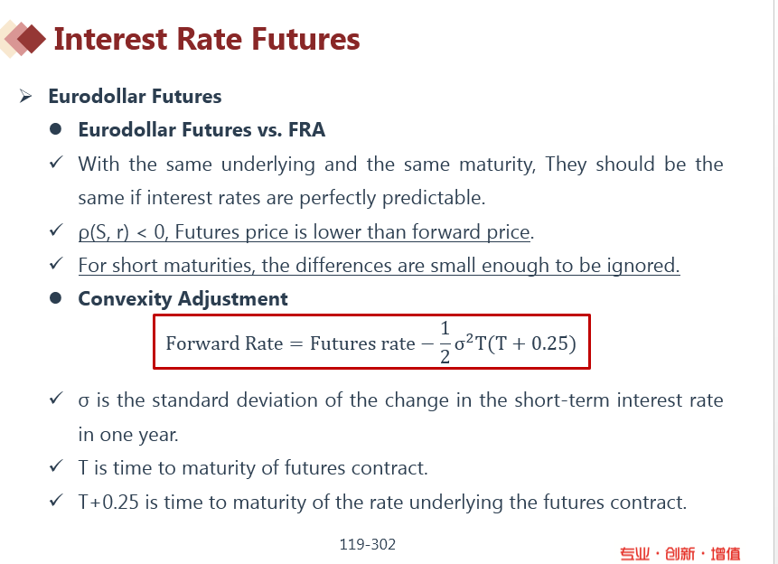 老师好,请问为什么forward rate 和 future rate可以互相转换?forward rate = futures rate - 1/2*σ²T1*T2 这个公式代表的是什么?