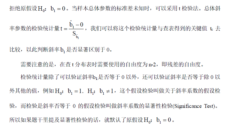 同学,你好,这里没看到使用自由度是n-1,你看看下图对回归系数的假设检验