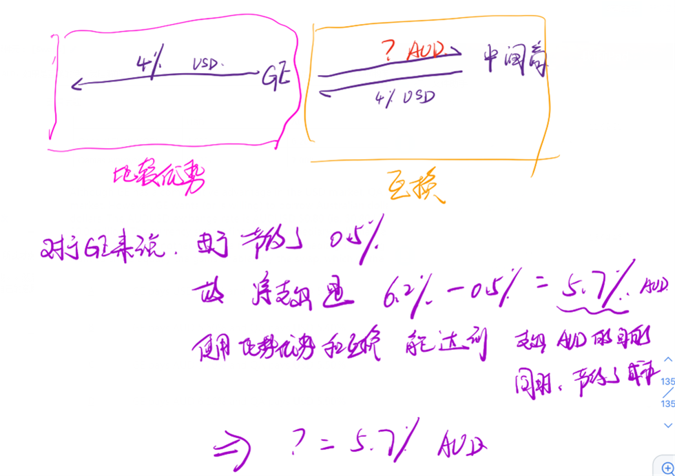 双方呢,以比较优势去市场上借钱。。然后双方在进行互换。