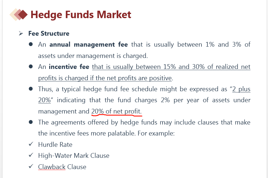 2:这里的20%,指的是业绩费用。但是这个业绩费用是“在总收入的基础上,扣减管理费,也就是net profits ”的基础上才计提的