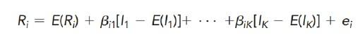 而APT模型是在无套利的基础上建立的,是CAPM模型的拓展,套利定价理论(APT)认为套利行为是有效市场形成的一个决定因素,如果市场没有达到均衡状态时,市场会存在套利机会,通过因素模型来解释资产收益,并根据无套利原则,得到风险资产均衡收益与多个风险因素之间存在着线性关系。套利定价模型反映了资产的均衡收益与市场上风险因子之间存在着线性关系,假设已经确定存在k个市场风险因子会影响资产收益率,可得E(Ri)=Rf+βi1Rp1+βi2Rp2+……+βikRpk,Rpk代表第k个风险因子的风险溢价。