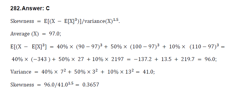 这道题它的均值小于中位数,不是应该是左偏吗,但是算出来又是大于0的偏度