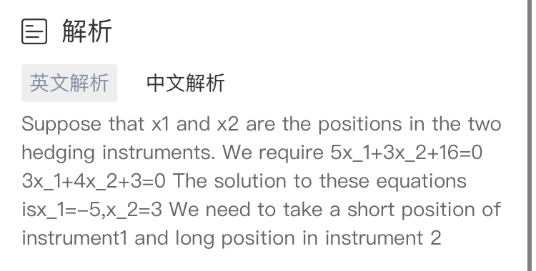 最终我们可以解出最终结果,记住,对冲,是所有的变化量加到一起等于0,所以同学要能够正确区别每一个标的在利率变动的时候,的变化量是多少,最终就可以解出答案的